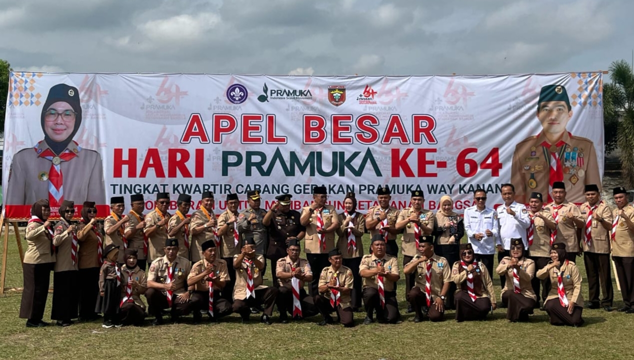 Way Kanan, – Mengusung tema “Kolaborasi untuk Membangun Ketahanan Bangsa” sebagai wujud semangat kebersamaan dalam memajukan generasi muda Indonesia. Apel Besar Hari Pramuka ke-64 yang digelar di Lapangan Sriwijaya, Kecamatan Baradatu, Kabupaten Way Kanan pada Rabu (14/8/2025) diikuti oleh ratusan anggota Pramuka dari berbagai tingkatan, mulai dari siaga, penggalang, penegak, hingga pandega, serta dihadiri oleh Komandan Kodim 0427/Way Kanan Letkol Arm Sigit Windarto, S.Sos., M.Han, unsur Forkopimda, tokoh masyarakat, dan organisasi kepemudaan lainnya