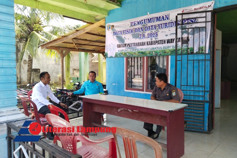Way Kanan – Nikolas Palinggi, S.SIT., M.H Kepala Kantor Pertanahan Kabupaten Way Kanan melakukan monitoring langsung ke lapangan untuk memantau program PTSL di Kampung Suka Bumi, Kecamatan Buay Bahuga Kabupaten Way Kanan, Rabu (11/06/2025)