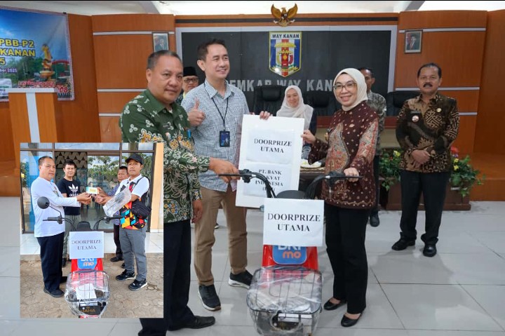 Way Kanan, – Dalam rangka bulan panutan pajak bumi dan bangunan perdesaan dan perkotaan (PBB-P2) tahun 2025, Pemerintah Kabupaten Way Kanan, Provinsi Lampung melalui Badan Pendapatan Daerah (Bapenda) menggelar berbagai Doorprize Utama baik bagi pemenang katagori maupun pemenang undian sebagai wujud apresiasi, Kamis (16/10) Kemarin