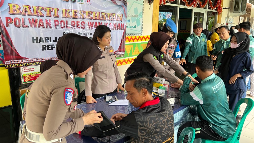 Kapolres Way Kanan AKBP Adanan Mangopang mengatakan kegiatan bakti kesehatan menjadi bagian komitmen Kepolisian untuk senantiasa hadir dan peduli terhadap kesehatan masyarakat sesuai dengan tema dalam rangkaian peringatan HUT Polwan ke-77 yakni “Polri Untuk Masyarakat”.