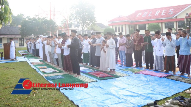 Kapolres Way Kanan AKBP Adanan Mangopang menyampaikan pelaksanaan salat Idul Adha bertujuan untuk mempererat silaturahmi sesama anggota Polres Way Kanan dan masyarakat sekitar.