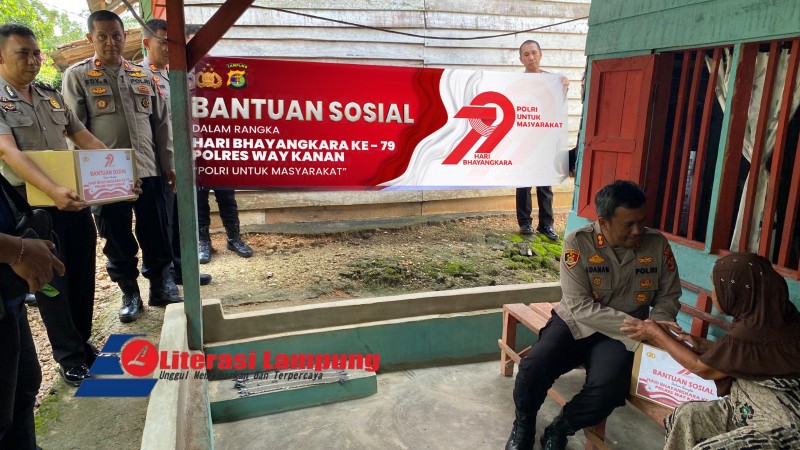 Way Kanan, – Polres Way Kanan Polda Lampung melaksanakan kegiatan Bansos (bantuan sosial) kepada warga dalam rangka peringatan Hari Bhayangkara Ke-79 di sekitar Kampung Negeri Baru Kecamatan Umpu Semenguk Kabupaten Way Kanan. Jum’at (13/06/2025).