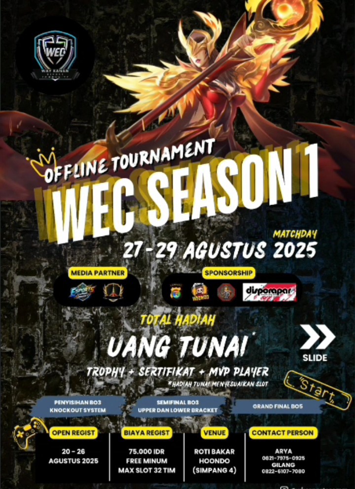 “Bagi yang berminat untuk mengikuti ajang tersebut, dapat mendaftarkan diri mulai hari ini dan informasi lebih lengkap dapat dilihat di akun instagram Way Kanan Esports Community,” ujar Arya, Kamis,(21/8/2025).
