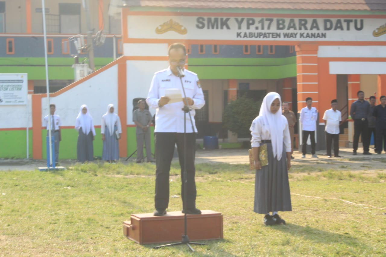 Kegiatan diawali dengan upacara bendera, di mana Ketua KPU Way Kanan, Hairul Pasya, bertindak sebagai pembina upacara. Upacara diikuti oleh Hi. Basyir, S.Pd.I. Kepala Sekolah SMK YP 17 Baradatu, seluruh dewan guru, Anggota KPU Way Kanan Nufi M. Yusuf, Kasubbag KPU Way Kanan, serta 775 siswa-siswi yang hadir dengan penuh antusias.