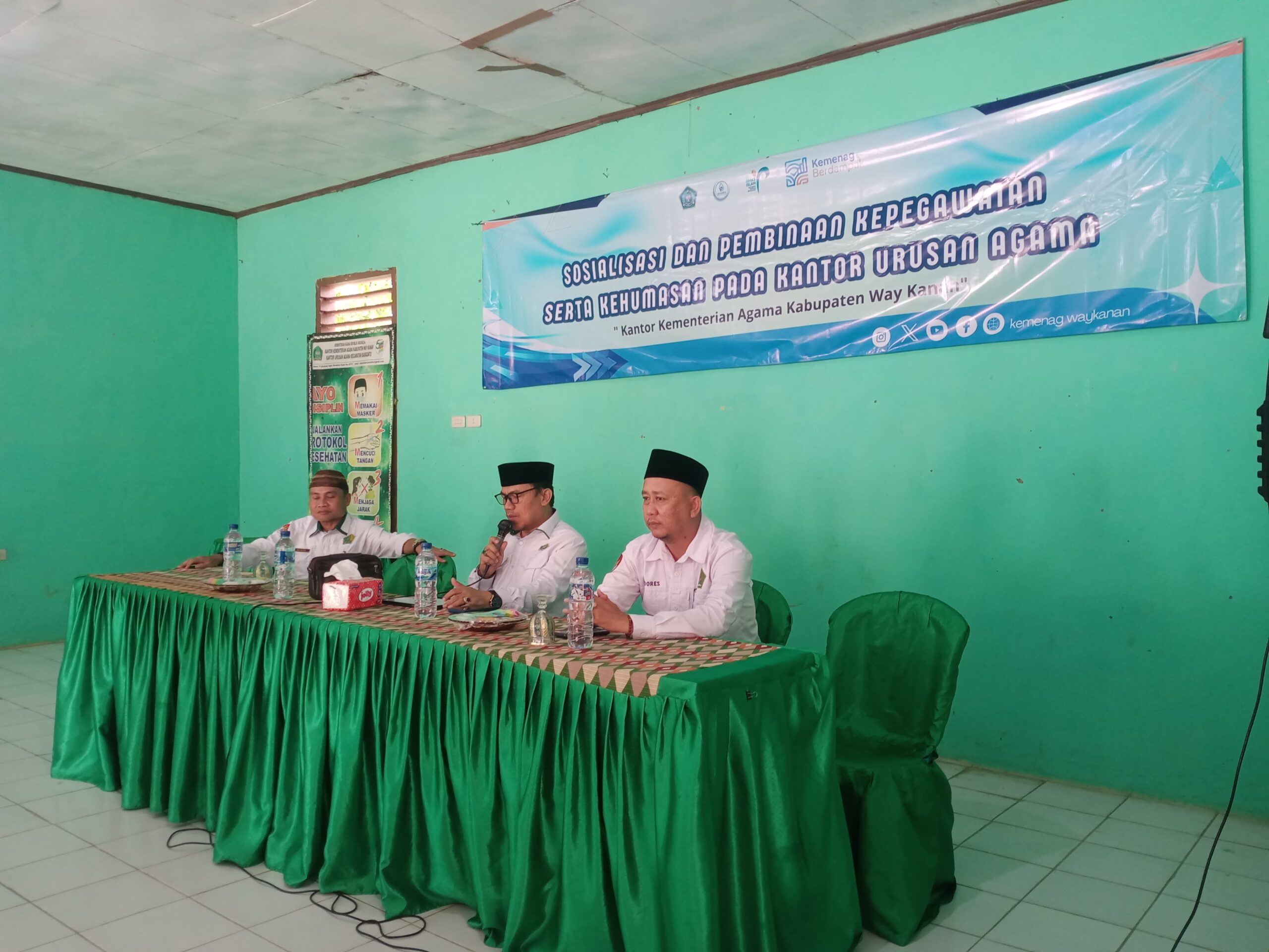Dalam kegiatan ini, Masir Ibrahim kepala kemenag Kab Way Kanan sebagai narasumber menyampaikan pentingnya kedisiplinan pegawai serta bekerja sesuai tupoksi.