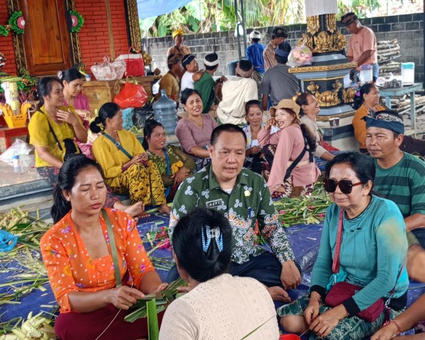 Merespon acara tersebut, disela – sela agendanya Camat Negeri Agung Hepi Haryanto hadir ditengah tengah masyarakat yang sedang melakukan persiapan menyambut upacara Piodalan