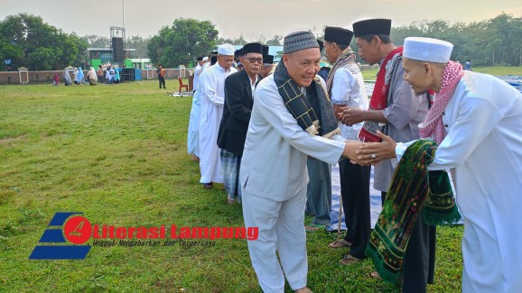 Way Kanan, – Camat Negri Agung Hepi Haryanto, S.E melaksanakan salat idul adha di Lapangan Kampung Kalipapan, Kecamatan Negeri Agung Kabupaten Way Kanan, Jum’at (06/06/2025)