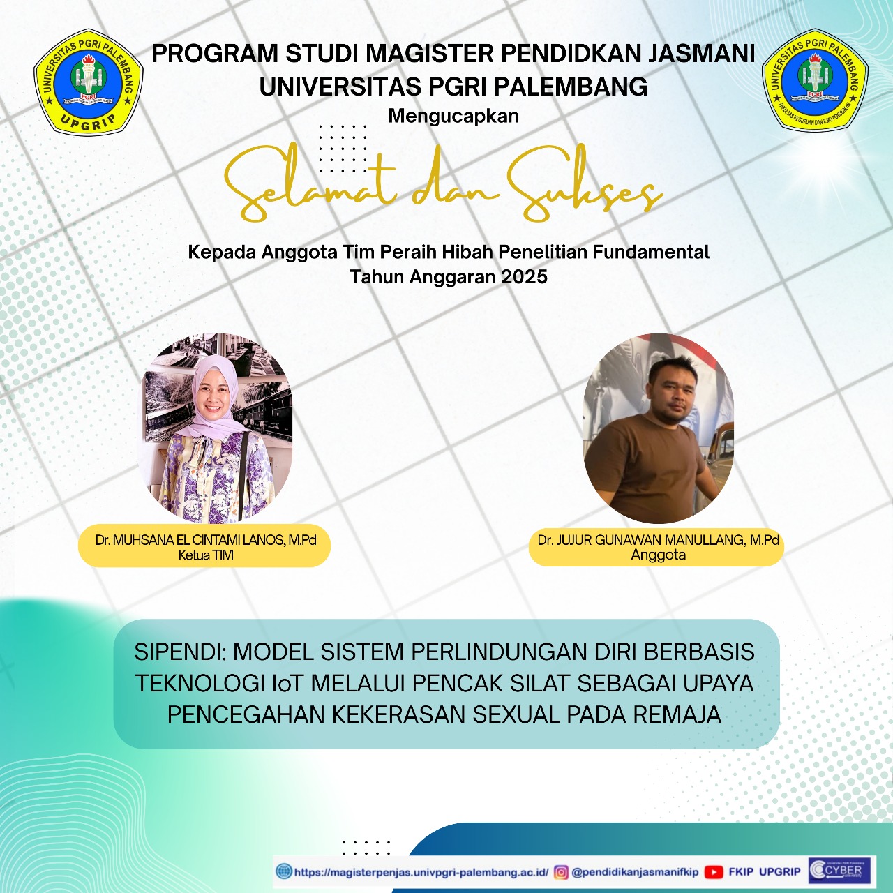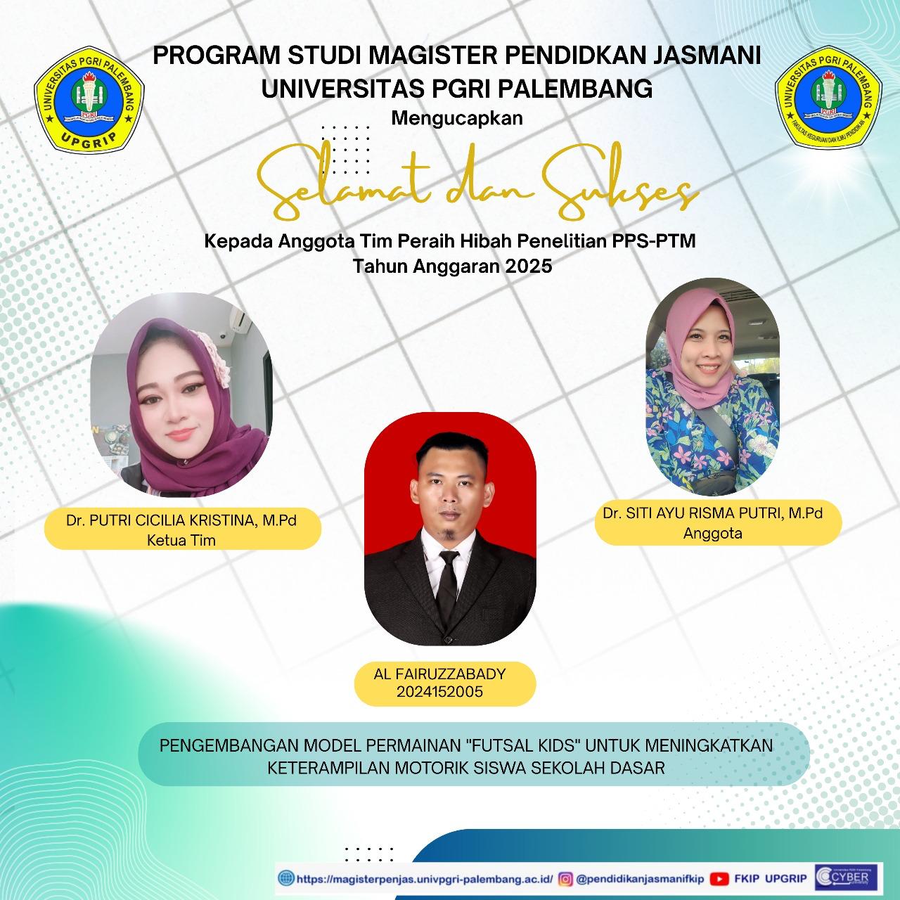 Palembang – Menjadi salah satu target dan komitmen Universitas PGRI Palembang (UPGRIP) dalam pencapaian prestasi. Hal ini tentunya mampu mendorong dan meningkatkan kualitas riset dosen UPGRIP dalam meraih prestasi Peraih Hibah Penelitian dan Pengabdian kepada Masyarakat (PkM) dari Kemendikbud Ristek Tahun 2025, Sabtu (07/06/2025)
