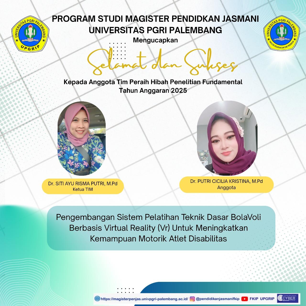 3. Dr. Siti Ayu Risma Putri, M.Pd (Peraih Hibah Penelitian Fundamental (PFR) dari Sumber Dana DPPM Kemdiktisaintek 2025), dan